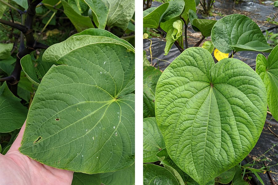 While these plants look similar, they are far from the same! Hoja Santa, or Piper Auritum leaves, have been used for many years in Mexican cuisine as a way to give complexity to dishes through notes of licorice, sassafras, mint, tarragon, and eucalyptus. Kava on the other hand has been described as peppery, piney, and sometimes almost spicy. The primary difference in consumption between these two examples, is that while hoja santa’s leaves are consumable, only the kava plant’s rhizome (stump and roots) is digestible.